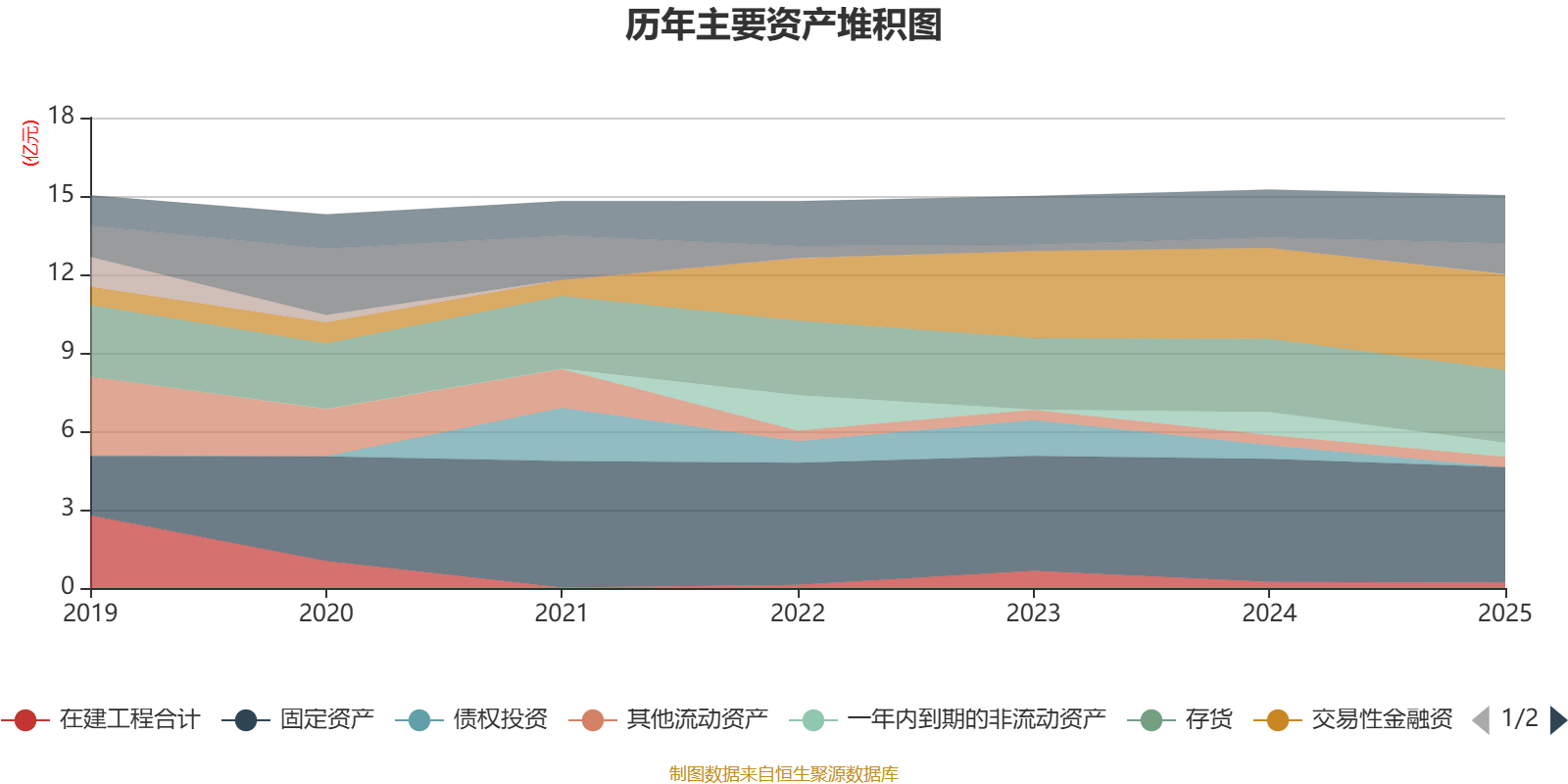 资产重大变化方面,截至2025年末,公司货币资金较上年末增加198.59%,占公司总资产比重上升5.27个百分点;债权投资较上年末减少100%,占公司总资产比重下降3.48个百分点;一年内到期的非流动资产较上年末减少37.92%,占公司总资产比重下降2.15个百分点;交易性金融资产合计较上年末增加5.13%,占公司总资产比重上升1.51个百分点。