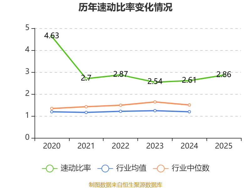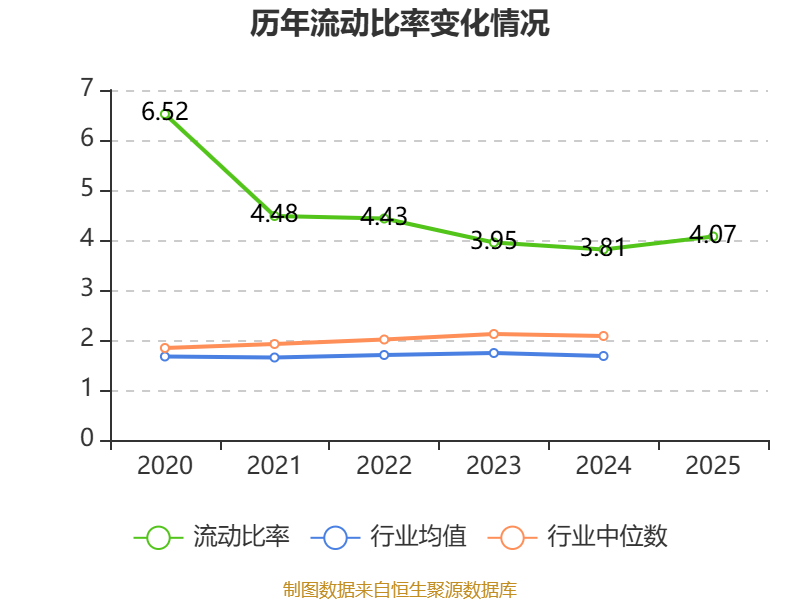 2025年,公司流动比率为4.07,速动比率为2.86。