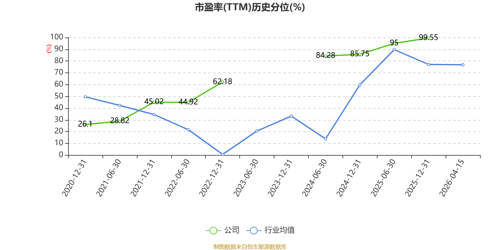 市盈率、市净率为负时,不显示当期分位数,会导致折线图中断。