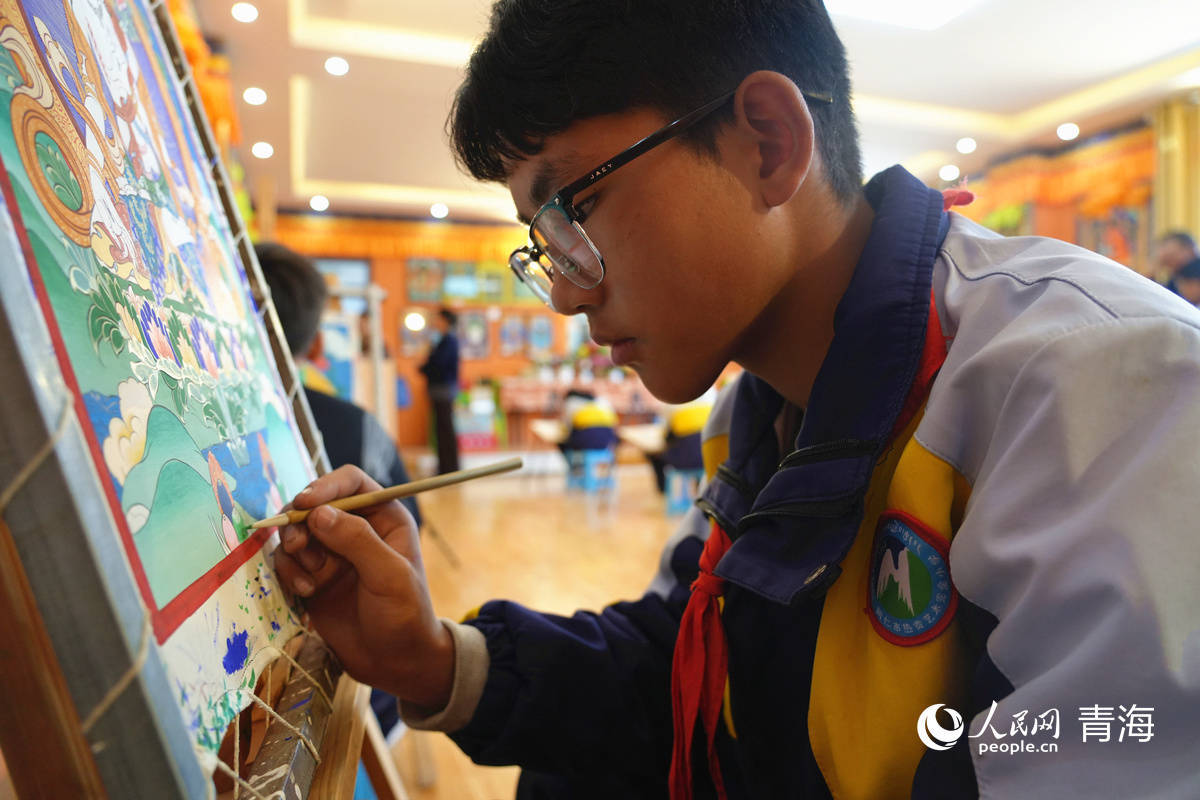 同仁市第一民族中学学生学习绘画。人民网记者 杨启红摄